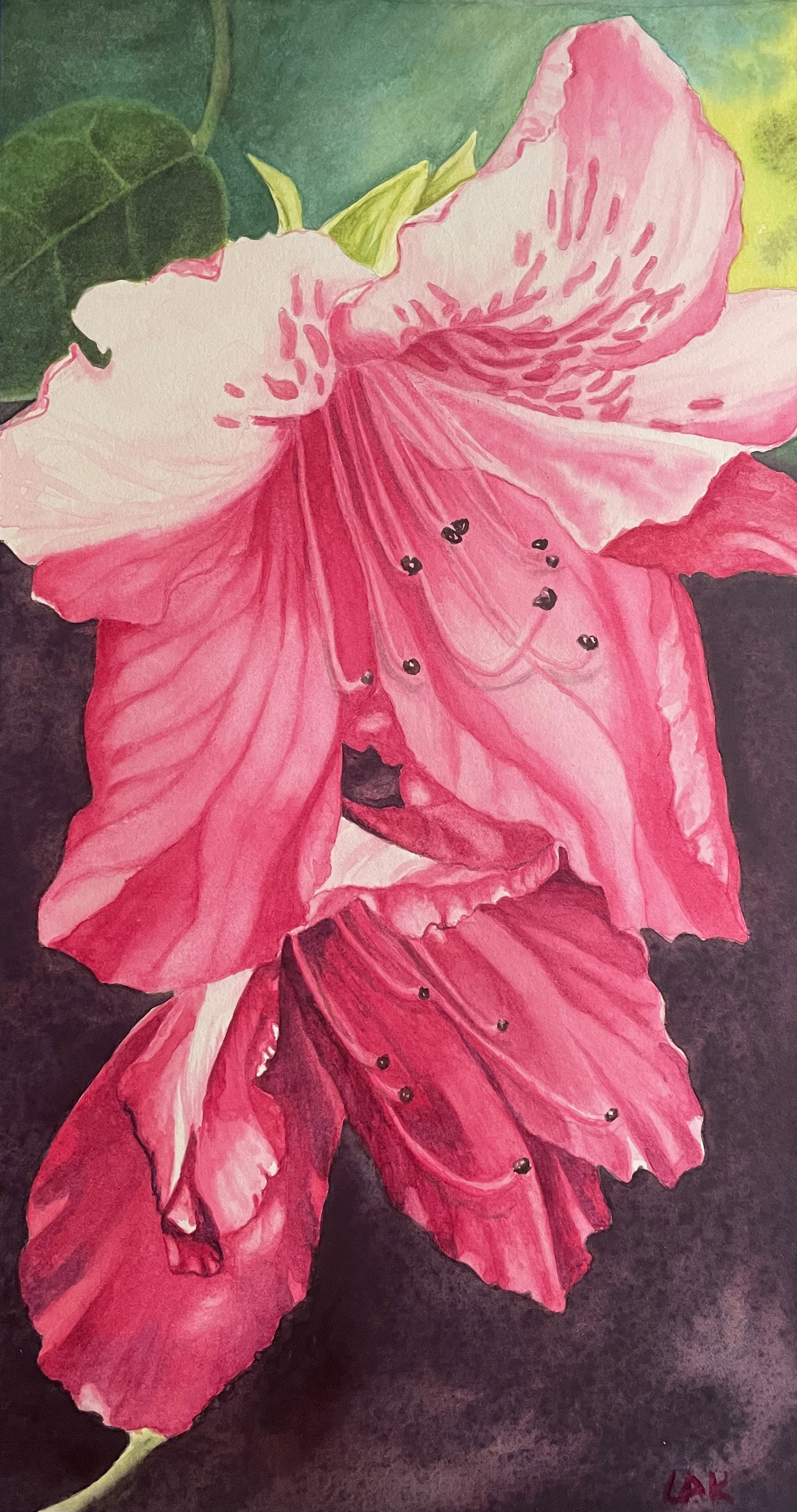 Original Watercolor, Rhodo in Shadows, 2025